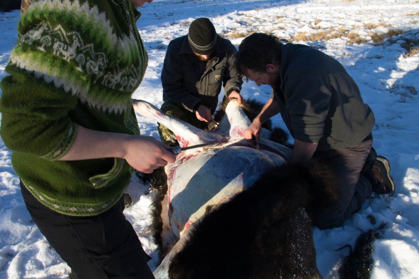 buck3 Published September 26, 2015 at 4272 × 2848 in Adventures in Yukon and Alaska Ali, Logan and Dan separate the hide from the skin