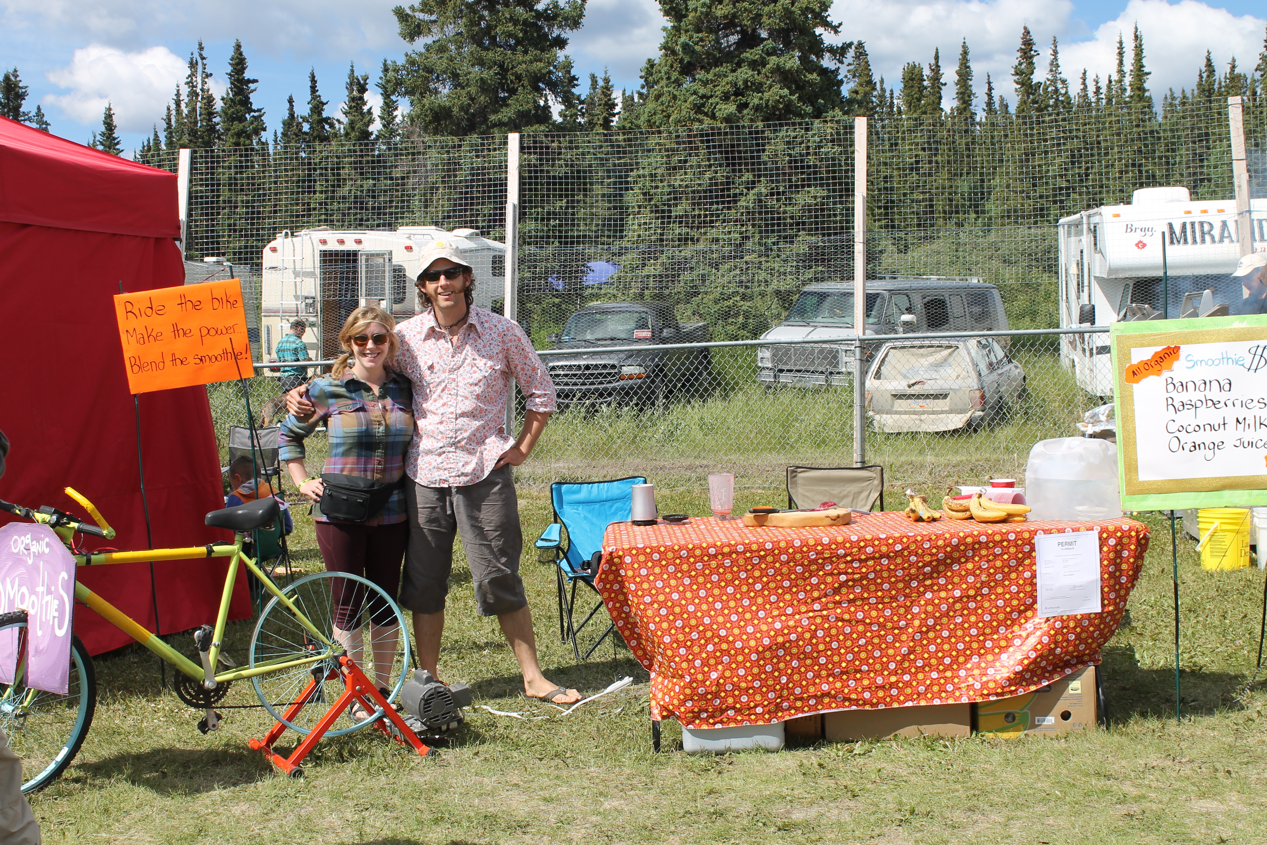 smoothiebike31 Published September 26, 2015 at 4272 × 2848 in Adventures in Yukon and Alaska Heather and Dan with smoothie bike, Atlin Music Fest